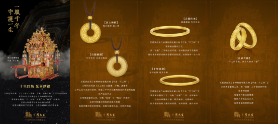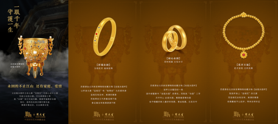 時下,“文創IP的國潮時尚”正立潮頭,周大生攜手《國家寶藏》乘勢而創,傾力打造“中國國寶藝術典藏金品”之“家慶”系列,創造了千年國寶文化與黃金珠寶設計共融的更多可能性,讓千年國寶文化以珠寶藝術形式真正的“活”起來、“潮”起來,同時也讓深藏于國寶中深厚的情感內涵得以煥發新聲,成為現代婚嫁禮節中幸福的信物以及日常生活中觸手可及的潮搭首飾。此次聯名不僅將中國珠寶藝術推演至新的巔峰,也打造了文化創造實現最大化的經濟價值的典范標桿。