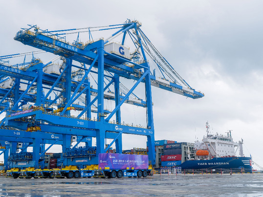 欽州自動化集裝箱碼頭操作人員正在進行設備技術交流。資料照片