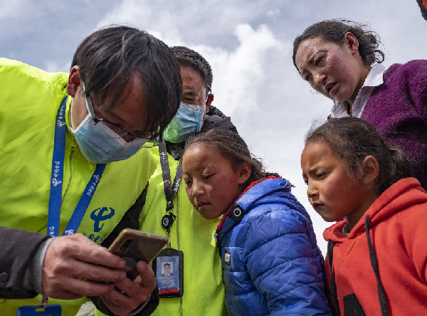 中國電信集團拉薩分公司當雄電信局的技術人員在烏瑪塘鄉巴嘎村幫助村民調試無線網絡。資料照片