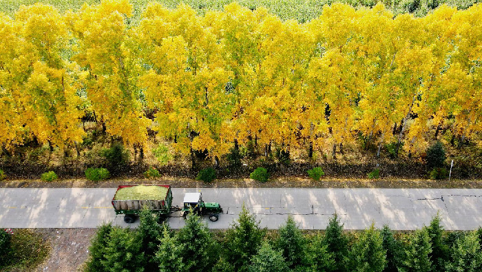 北大荒集團(tuán)北安分公司青貯玉米收獲后被裝車運(yùn)走。
