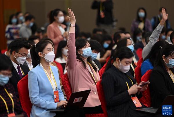 這是記者在分會場提問。新華社記者 金良快 攝