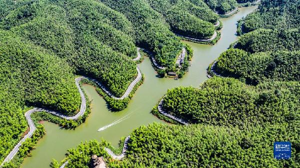 游客在貴州省赤水竹海國家森林公園內游玩(2020年6月25日攝,無人機照片)。新華社記者 陶亮 攝