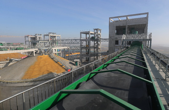工人在中央儲備糧秦皇島直屬庫有限公司海港糧食儲備基地項目建設工地施工。記者 楊世堯 攝