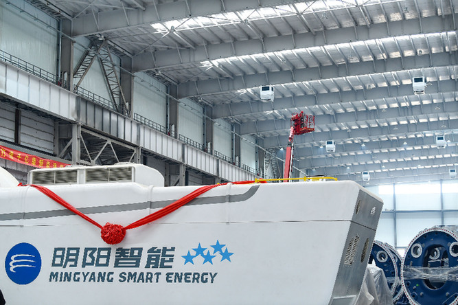 “去年3月開工建設,誰能想到不到一年的時間,就能建成這么大規模的項目。”該項目負責人劉瑋介紹,從一片荒山到大型廠房排布,這里很快將建成大型陸上風電整機、齒輪箱、發電機、碳玻混合超長葉片等核心部件的智能制造基地,具備年產1000臺套以上陸上超大型風電整機及核心部件的生產能力。