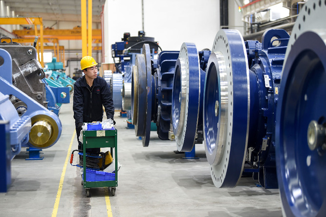 2月13日,工人在南高齒(包頭)傳動設備有限公司生產車間內作業。