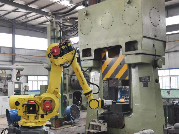 在鋼諾公司車間,一臺機器人站在裁切、沖壓兩個工序間,用鋼鉗轉移8公斤重的鋼段,連續10小時重復一個動作,每天可搬運40噸原料,其效率、安全性和精準度遠超人工。