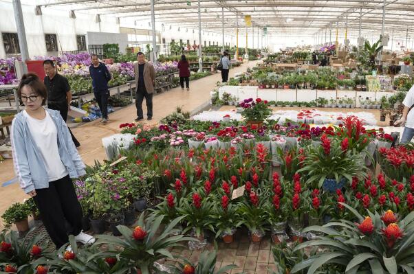 4月17日,顧客在河北省廊坊市永清縣恒美國際花都選購鮮花。近年來,河北廊坊永清縣積極承接北京非首都功能疏解,通過產(chǎn)業(yè)引導(dǎo)、政策扶持等舉措建成以花卉為核心的全產(chǎn)業(yè)鏈田園綜合體——恒美國際花都。該基地展廳面積達(dá)2.5萬平方米,有特色花卉近千個(gè)品種。在花卉交易的帶動(dòng)下,周邊村街已形成4000余畝的花卉種植基地,逐步打造“公司+村街+合作社+農(nóng)戶”的發(fā)展模式。新華社記者 才揚(yáng) 攝