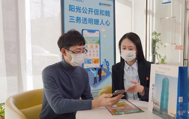 建行工作人員向客戶介紹“陽光三務(wù)”智慧平臺。受訪者供圖