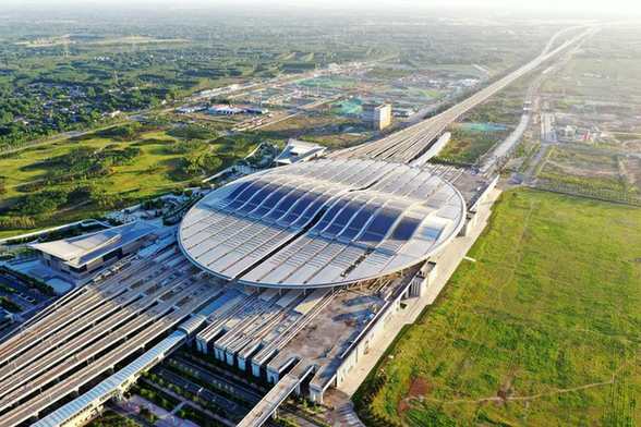 這是雄安站(6月2日攝,無人機(jī)照片)。雄安站位于雄安新區(qū)昝崗片區(qū),是雄安新區(qū)開工建設(shè)的第一個重大基礎(chǔ)設(shè)施項(xiàng)目,具有標(biāo)志性意義。新華社記者 朱旭東 攝