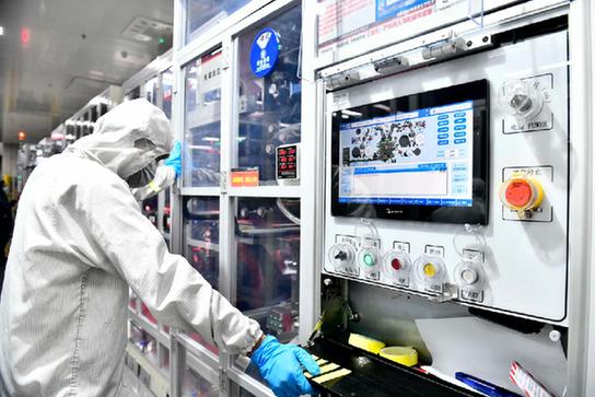 6月6日,在山東吉利欣旺達動力電池有限公司,工作人員在鋰電池生產線值守。 新華社記者 郭緒雷 攝