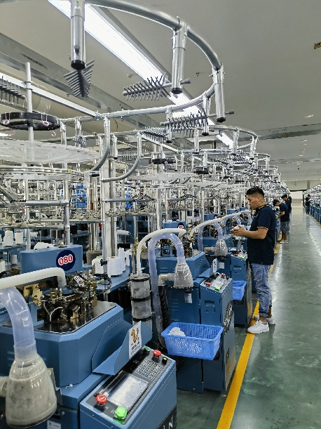 經(jīng)過近三年的建設(shè),產(chǎn)業(yè)園已建成13個車間,共5960臺襪機(jī)裝備完畢投產(chǎn),職工人數(shù)已達(dá)1200多人,日產(chǎn)250萬雙棉襪,2022年總產(chǎn)值突破3億元,全球有主要客戶115家,產(chǎn)品主要外貿(mào)合作國家22個,已經(jīng)成為全球單體生產(chǎn)規(guī)模最大的襪業(yè)企業(yè)之一。