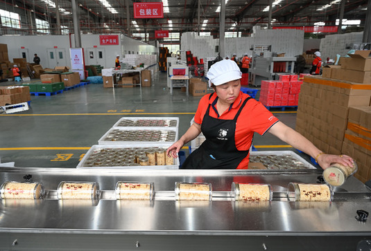 福建省寧德市加快農村電商創業園和電商直播基地建設。圖為員工在辰頤嚴選產業園的電商農產品深精加工車間檢查農產品包裝。新華社記者 林善傳 攝