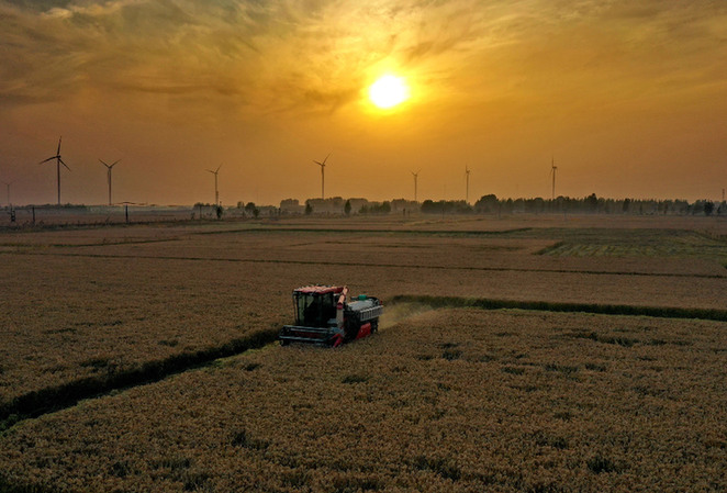 近日,河北省唐山、秦皇島等冀東地區的水稻收獲工作全面展開,標志著該省的秋糧收獲工作接近尾聲。據介紹,今年河北省秋糧種植面積6200萬畝。圖為10月23日,農機手在河北省昌黎縣劉臺莊鎮的田間操作收割機收獲水稻(無人機照片)。