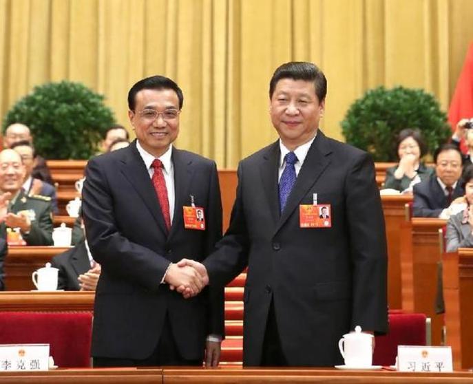 2013年3月15日,第十二屆全國人民代表大會第一次會議在北京人民大會堂舉行第五次全體會議。會議經過投票表決,決定李克強為中華人民共和國國務院總理。這是習近平同志和李克強同志親切握手。