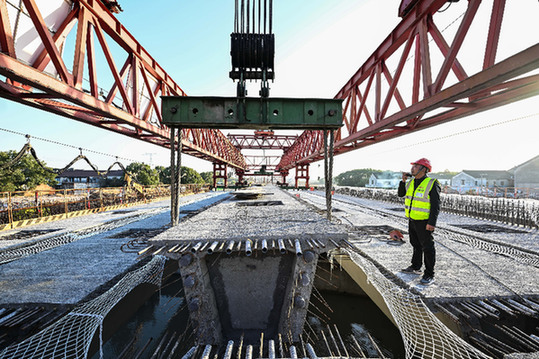 圖為中鐵二十局工作人員在蘇臺高速公路七都至桃源段ST-QL5標主線橋梁架設現場指揮。近日,由中鐵二十局承建的蘇臺高速公路七都至桃源段ST-QL5標主線橋梁全幅貫通,為建成通車打下堅實基礎。據介紹,蘇州至臺州高速公路七都至桃源段ST-QL5標項目為江蘇省重點工程。