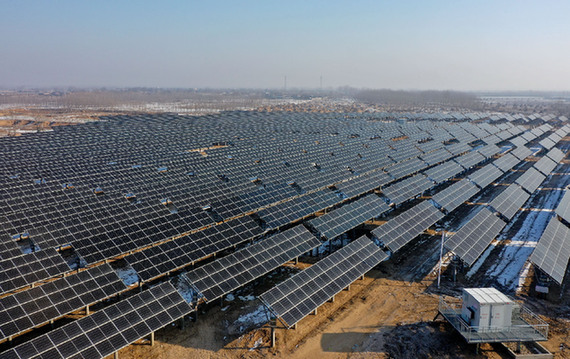 河北秦皇島昌黎縣荒佃莊鎮附近的一處光伏發電場(無人機照片)。新華社記者 楊世堯 攝