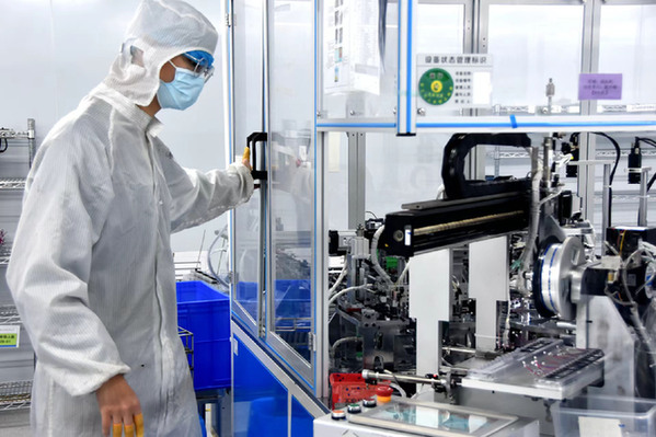 3月7日,工作人員在陜西軒意光電科技有限公司生產線前作業。 記者 張晨俊 攝