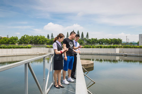 農行廣東分行員工實地調研梅湖水質凈化中心污水處理項目。資料照片