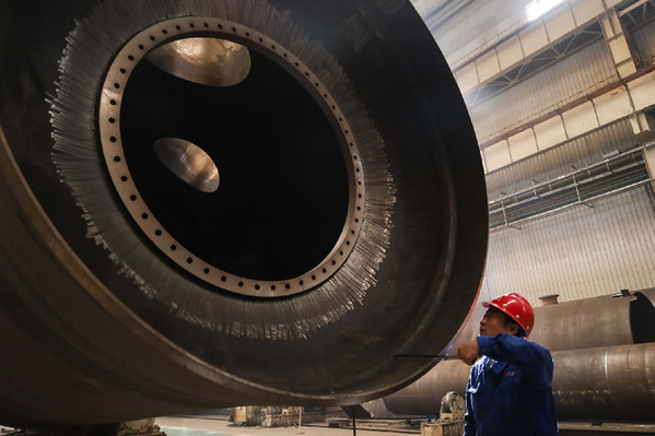 工人在蘭州新區蘭石集團高端裝備產業園的生產車間作業。 記者 馬希平 攝