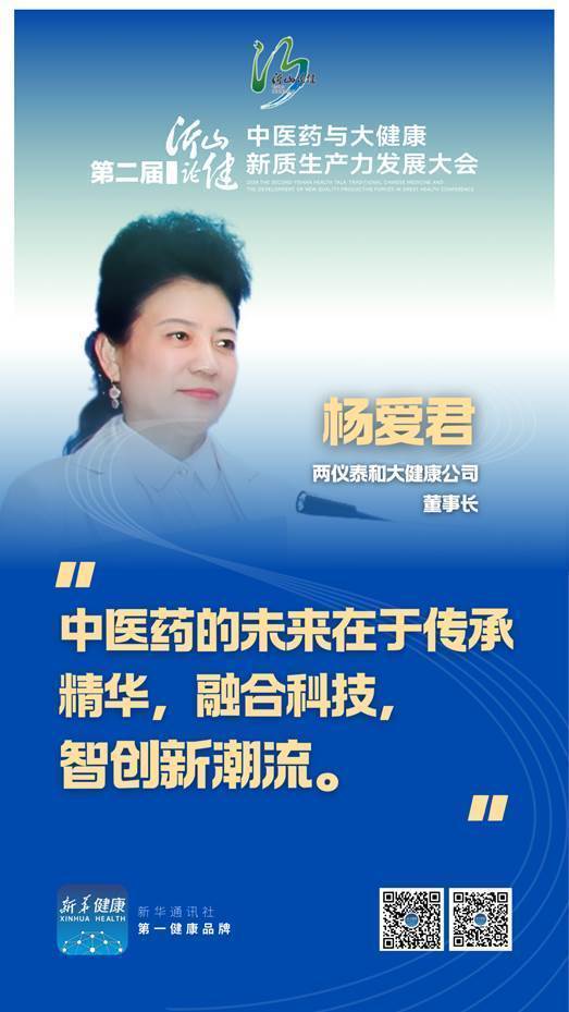 日前,第二屆“沂山論健·中醫(yī)藥與大健康新質(zhì)生產(chǎn)力發(fā)展大會(huì)”在山東省濰坊市臨朐縣舉行。大會(huì)期間兩儀泰和大健康產(chǎn)業(yè)有限公司董事長(zhǎng)楊愛君接受新華社“新華健康”記者專訪時(shí),分享了她做為傳統(tǒng)企業(yè)負(fù)責(zé)人對(duì)探索創(chuàng)新型生物醫(yī)藥企業(yè)新賽道的思考,并展望了中醫(yī)藥與現(xiàn)代科技融合的未來。