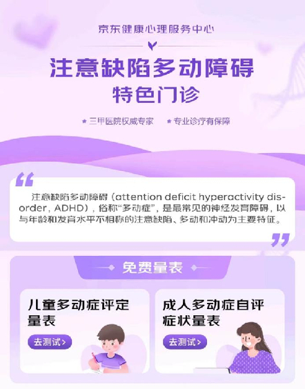 京東健康心理服務中心的兒童與青少年心理門診不僅提供精神科專家問診和線上心理咨詢,還推出了多種評定量表,涵蓋兒童常見神經發育障礙的注意缺陷多動障礙(ADHD)量表和自閉癥譜系障礙量表,以及關注孩子社交和抗壓能力的測評。此外,門診還擁有豐富的科普資源,包括精神科醫生和心理咨詢師的原創科普文章和直播,幫助家長更全面了解孩子的心理問題。