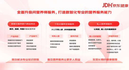 目前,京東健康已經建成國內最大的專業營養師在線服務團隊,擁有近千名營養科醫生與營養師,30秒內回復達95%以上,用戶好評率高達98%。