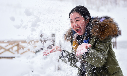 長白山景區內玩雪的游客。 記者 王昊飛 攝