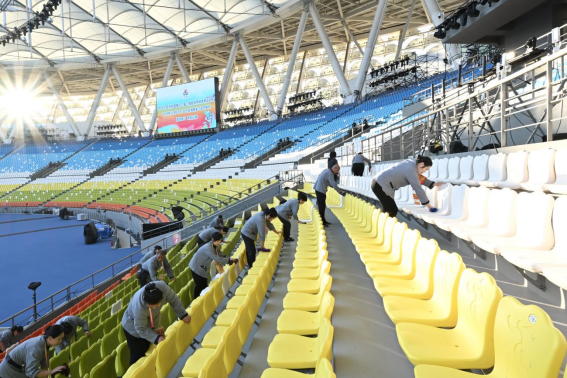 保賽經驗豐富的華潤置地,在本屆運動會的機電工程方面組建了強電、弱電、電梯、消防等6個專業小組:強電組對4個配電房和41個強電井供配電設備設施接駁點緊固排查,主備電切換測試,參數整定以及地毯式清潔保養;弱電組全面測試和排查監控點位400多個、5套端屏和1套斗屏;空調組對近400臺空調內外機進行細致清洗和滿負荷測試;消防組全面排查8000多個消防點位;電梯組對全場17臺電梯進行細致排查和應急預案演練;給排水排查管網4583米,檢修設施1826套……