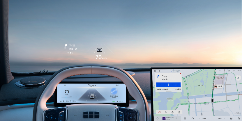 車端主流高頻應(yīng)用全配齊,F(xiàn)lymeDesgin設(shè)計(jì)風(fēng)格超自然,壁紙桌面隨心換,更有音樂小窗模式,SmartBar快速切換后臺應(yīng)用,操作像手機(jī)一樣好用。搭配14.6英寸窄邊中控屏+10.2英寸全液晶儀表盤+13.8英寸超清W-HUD抬頭顯示,帶來超享受的三屏聯(lián)動(dòng)。其中,抬頭顯示更擁有高達(dá)12000nits亮度,媲美豪華高端車型,即使是在直射陽光下依然能夠提供清晰可見。