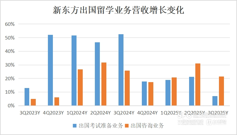 本季度出國考試準備業務營收7.1%的增長率,是2023年以來最低的增幅。出國咨詢業務的營收增幅比去年同期和上個季度也均有滑落。
