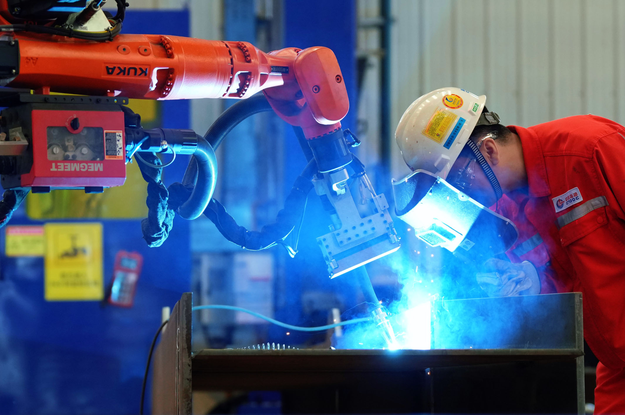 圖為工作人員在海油工程天津智能制造基地查看一款機器人智能焊接系統作業。記者 趙子碩 攝