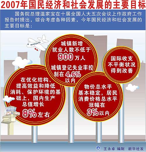 “物價總水平基本穩定,居民消費價格總水平漲幅在3%以內。”今年政府工作報告對物價調控目標作了這樣的安排,3%的預定目標與上年的年度目標相同。 當前的經濟形勢是“高增長、低通脹”,以2006年為例,經濟增長率為10.7%,而居民消費價格漲幅僅為1.5%,物價總體溫和。 不過,中國工商銀行安徽分行行長、全國人大代表趙鵬指出,政府工作報告在介紹完經濟增長連續四年達到或略高于10%之后,接下來就說“沒有出現明顯通貨膨脹”,說明在經濟高增長的背景下,政府對通貨膨脹問題高度關注。 西南財經大學教授、全國人大代表秦池江認為,2006年居民消費價格總水平上漲1.5%雖然不高,但這并不意味著當前通貨膨脹壓力很小,必須有所防范。今年設定物價3%的目標,其面臨的形勢也是這樣。 當前,銀行體系流動性過剩給整個物價形勢帶來不小壓力。北京大學國民經濟核算研究中心蔡志洲研究員表示,由于國際收支不平衡造成央行不斷放出基礎貨幣,貨幣供給增加的壓力正在加大。貨幣供給超過實際需求,就容易造成通貨膨脹壓力。 而資源性產品價格改革,也將增加物價上行壓力。記者從有關部門了解到,為更好地采用經濟手段促進節能降耗,為使資源價格更好地反映資源稀缺度,資源性產品價格將總體上行,會帶動居民消費價格一定程度的上漲。 此外,去年底部分地區糧食價格的上漲,對今年居民消費價格的影響也將逐漸釋放和表現出來。部分公共產品和服務價格的調整也會帶動居民消費價格上行。 綜合上述原因,央行等部門也認為,當前物價上行風險要大于下行風險。雖有壓力,但今后并不會出現明顯的通脹。 記者從有關部門了解到,當前社會供求關系總體平衡,供略大于求,這總體上制約了明顯通貨膨脹的出現。更重要的是,經過了這么多年的宏觀調控實踐,政府對市場規律的認識不斷深化,調控藝術和手段不斷完善,完全有能力應對通貨膨脹的壓力。 “3%是物價溫和上漲的上限。”蔡志洲研究員指出,這個指標是切合實際、留有余地的,政府通過回收流動性、穩定糧食價格、把握資源性產品和公共服務價格調整節奏等方式,完全能夠實現這個物價調控目標。