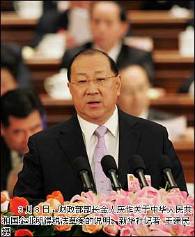 2007年3月8日在第十屆全國人民代表大會第五次會議上 財政部部長 金人慶