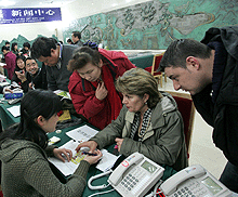 | 3月6日中午,在北京廣西大廈的電梯里,我碰巧遇上了浙江代表團的一位全國人大代表,我見他手里拿著一疊文字材料,猜想那一定是議案,希望能夠采訪他。當得知我是做科技方面報道的記者后,他很高興地與記者聊起“3G”(第三代移動通信),原來他這次帶來的建議案正是關于如何加快我國3G發展的。[詳情] |