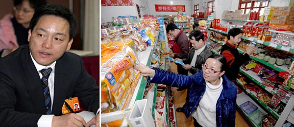全國政協委員李立新(左圖)建議在全國實施“連鎖超市、放心店進鄉村”工程。有關部門出臺相應政策,引導扶持連鎖企業向農村發展,開設連鎖超市、連鎖便利店,嚴把商品準入關。