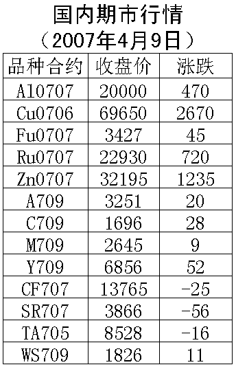 4月9日國內(nèi)期貨市場白糖下跌,金屬、能源、農(nóng)產(chǎn)品價格全部飄紅。倫敦、美國市場上周五因復活節(jié)休市。滬銅706合約周一上漲2670元/噸,收盤69650元/噸,支撐價位68000元一線,上漲壓力71500元一線。滬鋁706合約周一上漲360元/噸,收盤19860元/噸,支撐19600元一線,上漲壓力20300元一線。