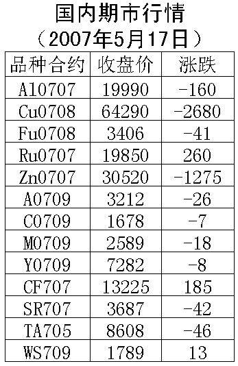 17日國內(nèi)期貨市場(chǎng)金屬大幅下跌。倫敦銅周三下跌110美元/噸,收盤7630元/噸。滬銅707合約周四下跌2670元/噸,收盤63970元/噸達(dá)到跌停板,明日漲跌幅度擴(kuò)大到5%,支撐價(jià)位63000元一線,上漲壓力65000元一線。倫敦鋁周三下跌4。5美元/噸,收盤2838美元/噸。滬鋁707合約周三下跌160元/噸,收盤19990元/噸。