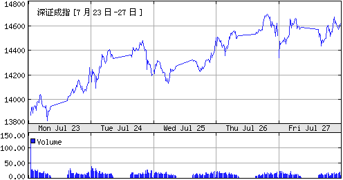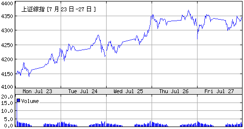本周,國內股市強勢上揚,創出歷史新高。隨著兩只政策“靴子”落地,滬深股市可謂是氣勢如虹,雙雙刷新歷史高點紀錄,掀開了中國證券史上嶄新的一頁。 本周里,上證綜指、上證50、上證180、深證成指等均創出歷史新高。上證綜指報收于4345.36點,一周大漲7.08%,周K線已經連續三連陽;深證成指報收于14614.1點,周升幅也達到8.92%。股指創新高的同時,本周兩市的成交量比上周明顯放大,其中滬市周成交7007億元,深市周成交3779億元。兩市的日成交量達到了上周的1.9倍。 具體來看,周一,滬深股市繼續上周五的漲勢,兩市股指高開高走,穩步上揚,上證綜指和深證成指分別收復4200點和14000點整數關口,同時,投資者A股開戶數7月份首次突破10萬戶。周二,兩市股指高位震蕩,周三,兩市股指再度發力上沖,上證綜指離歷史高點近一步之遙。周四,股指雖然只是小幅上漲,但上證綜指和深證成指均毫無懸念地順利突破歷史高點,雙雙創出4371.51和14703.17點的歷史新高,周五兩市則小幅調整。 來自滬深證券交易所的最新統計數據顯示,截至本周最后一個交易日,滬深兩市總市值為193322億元,較上周末增加7.98%。其中,滬市總市值為149476億元,較上周末增加7.17%;深市總市值為43846億元,較上周末增加10.83%。滬深股市總流通市值為65012億元,較上周末增加10.08%。其中,滬市流通市值為42950億元,較上周末增加9.67%;深市流通市值為22062.45億元,較上周末增加10.74%。 在宏觀經濟持續向好、上市公司中期業績大幅增長、流動性依然充裕這些牛市的基本因素未出現根本改變的前提下,困擾市場的利空因素基本明朗和新增資金不斷入場,是本周行情大幅上攻的主要誘因。在市場盤整期間新發和拆分的基金加速進場,質優藍籌股成為其建倉的首選。而基金等機構投資者連續數周出現凈買入,金融和地產股成為其配置的重點品種。同時,經過前期的大幅調整后,中小投資者充分認識到了價值投資的重要性,散戶投資者操作行為“基金化”某種程度上強化了藍籌股籌碼的鎖定性,加之眾多藍籌股優異的中期業績預報,眾多因素形成合力,將促使藍籌股主導的行情繼續向縱深發展。 本周盤面的最大特征,是熱點板塊的有序輪動。在前周金融地產板塊領漲后,鋼鐵、電力、煤炭、有色金屬、券商概念等板塊相繼跟上。即便在板塊內部,市場資金的關注度也從一線銀行股、地產股,向二線銀行股、新上市的銀行股以及二級地產股快速流動。但與“5·30”之前的題材股爆炒相比,現在的市場熱點始終圍繞上市公司中報的良好業績預期而展開,績優藍籌股主導的二八行情有繼續向縱深發展的趨勢。