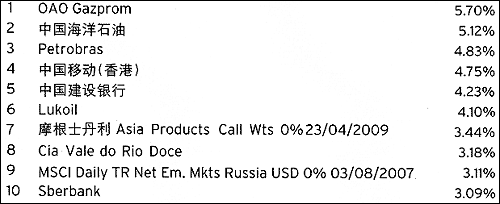 投資目標:主要投資于巴西、俄羅斯、印度和中國公司的股票證券。 資產(chǎn)分布:30%以上在中國,近30%在巴西,20%~30%在俄羅斯,10%左右在印度。 管理年費:1.5%。 風險評測:風險系數(shù)較高。“金磚四國”的股票市場在整個新興市場甚至是全球市場上扮演著越來越重要的角色,增長和上升潛力相對成熟市場更出色。“金磚四國”的股票市場之間的相關(guān)性較低,因此比投資于單一國家的股市更能有效分散風險。