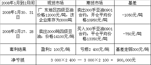 讓我們來分析發(fā)生在2008年的四個不同的套期保值實戰(zhàn)案例。 在保值虧損的案例一中,雖然廣東那家保值企業(yè)完全遵守了傳統(tǒng)的套期保值原則,但因為企業(yè)對大勢判斷失誤,在現(xiàn)貨價格相對于目標保值期貨價格已經(jīng)產(chǎn)生較大價差的情況下,依舊采用1:1的保值方案,結(jié)果造成沒有對所有現(xiàn)貨進行有效保護。 案例二中的天津某企業(yè)則表現(xiàn)出對大勢把握比較準確的操作思路。當(dāng)時,油脂價格處于上升勢頭中,現(xiàn)貨銷售比較容易,該天津油脂企業(yè)在期市上建立了小于現(xiàn)貨庫存數(shù)量的空頭頭寸數(shù)量。由于沒有建立完全數(shù)量的保值,企業(yè)在期市的虧損小于現(xiàn)貨市場上的盈利,從最終的保值效果看,企業(yè)實現(xiàn)了盈利。 在案例三中,山東某企業(yè)雖然對大勢把握準確,已經(jīng)認定了熊市的到來,但因為他們僅對60%的庫存數(shù)進行了期市上的空頭保值,再加上當(dāng)時處在價格加速下行時期,現(xiàn)貨銷售比較困難,使得另外40%的庫存處于敞口風(fēng)險當(dāng)中,期市上的空頭頭寸只給企業(yè)規(guī)避了部分庫存風(fēng)險,最終企業(yè)出現(xiàn)了不應(yīng)有的虧損。 在避險成功的案例四中,河北的這家企業(yè)不僅看準了走熊的大勢,而且在期市上建立了大于現(xiàn)貨庫存的空頭頭寸,企業(yè)在當(dāng)時市價銷售庫存較為困難的情況下,為了能在兩個市場同時進行交易了結(jié),以低于市價將庫存逐步消化,結(jié)局比較完美,除去兩市盈虧相抵的部分,企業(yè)在期市上建立的超額部分保值頭寸給他們帶來了超額收益。