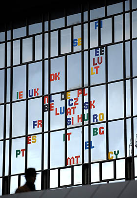 | 行人從比利時首都布魯塞爾的歐盟理事會大樓前經過,大樓的玻璃外墻上貼有歐盟27個成員國的國名縮寫。新華社記者 武巍 攝 | “商場里,人們在大量搶購商品。因為盧布不斷貶值,預支出去還能算是保值,這應該算是居民的自我保護吧。工廠倒閉的消息不時傳出。另外,也有一些群體性的上街活動,或者說是游行也好,反對派開始活躍。俄羅斯對外國人來說,最直接的感受就是物價一直在漲,老百姓都非常關注通貨膨脹對自己生活的影響,同時還擔心失業。”住在莫斯科的中國社科院俄羅斯東歐中亞研究所研究員李建民如此描述身邊的生活。她說,東歐其他國家也陸續爆發游行示威活動。 外債與GDP比率居高不下、外國直接投資銳減、匯率劇烈波動、失業率上升……東歐目前的境況不禁讓人聯想起1997年的亞洲金融危機。有分析人士表示,東歐有可能爆發與那次危機同等規模的經濟動蕩,與東歐市場“唇亡齒寒”的西歐銀行恐也將受到直接連帶沖擊。因此有人驚呼,金融海嘯“第二波”已經或即將來臨。但記者采訪的多位專家認為,東歐危機只不過是源于美國的金融危機在歐洲的蔓延,并且是地區性的,不至于引發全球性恐慌。