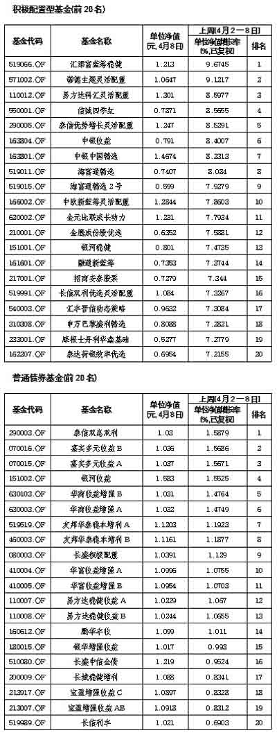 基金排行榜[2009-04-10]