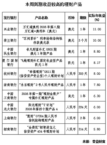 到期收益水平較高的理財產品中,除人民幣信貸資產類理財產品外,澳元理財產品表現搶眼,其中2款澳元結構性理財產品表現優(yōu)異,到期取得較高的年收益率。另外,1款1年期投資于股權的人民幣理財產品到期也實現了7.8%的高年收益率。