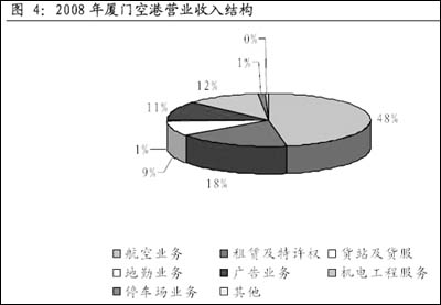 廈門空港租賃業(yè)務采取固定底金加收入提成的方式,提成比例與航空業(yè)務量掛鉤,2008年8月完成的新一輪為期4年的招標工作,商業(yè)面積和租金水平均有提高,另外在將辦公租賃客戶遷至3號候機樓地下停車場后,商業(yè)租賃面積和特許權面積將進一步擴大。在廈門機場換取登機牌后要穿越商業(yè)層安檢,合理的結構設計有利于旅客更多的消費,隨著廈門空港旅客吞吐量的穩(wěn)步增長,租金收入將處于穩(wěn)定增長的態(tài)勢。