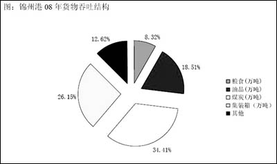 錦州港位于渤海灣西北部,是我國緯度最高的港口,冬季凍而不封,是天然的深水良港。經(jīng)濟腹地主要為遼西、蒙東、吉林、黑龍江和河北北部的區(qū)域;2008年吞吐量4723萬噸,貨種主要為煤炭、石油、糧食、集裝箱和散礦。錦州港是為數(shù)不多的整體上市的港口,三大股東為東方集團、大連港和錦州市港口和口岸局。