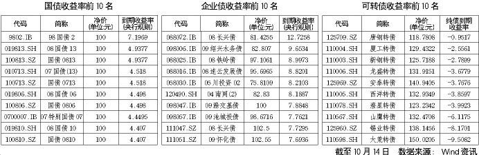 債券排行榜[2009-10-16]
