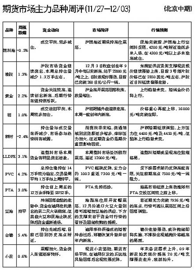期貨市場主力品種周評[11.27-12.03]