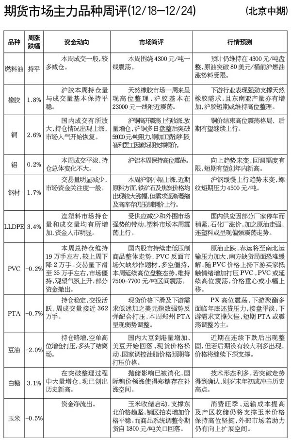 期貨市場主力品種周評[12.18-12.24]