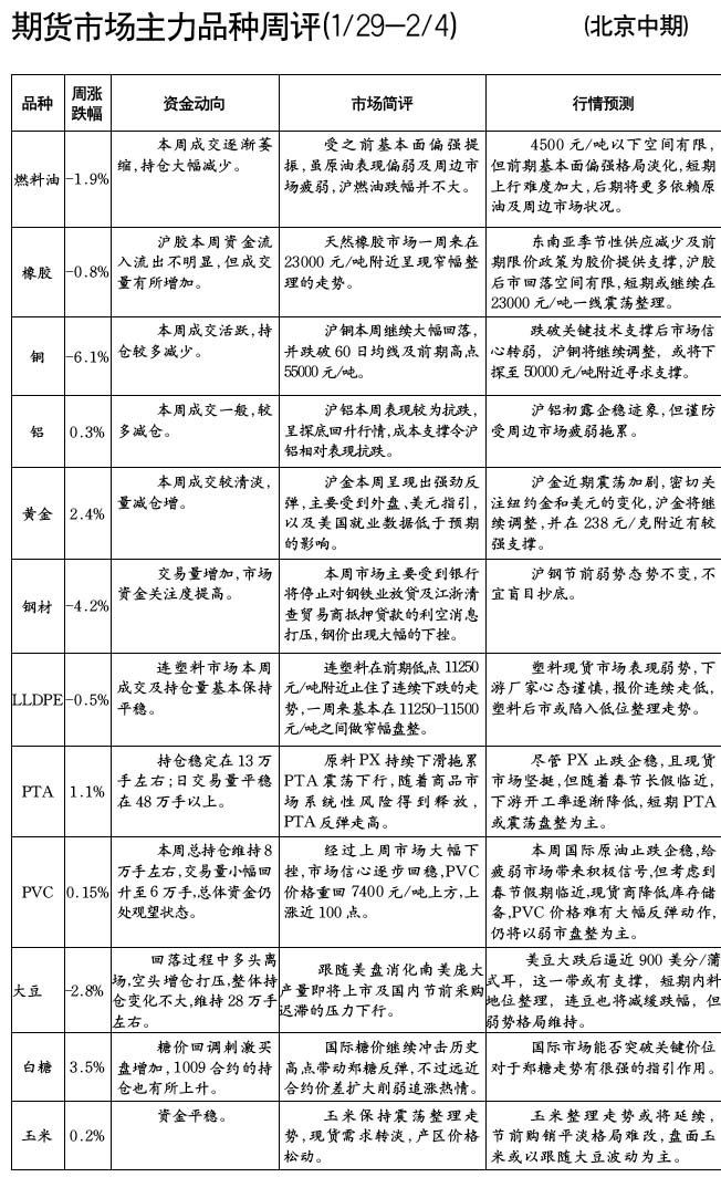 期貨市場主力品種周評[01.29-02.04]