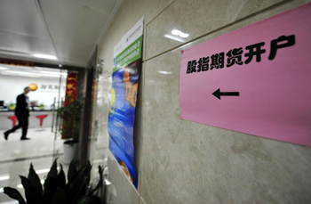 4月8日,工作人員在深圳招商期貨的股指期貨開戶柜臺辦公。新華社記者 陳曄華